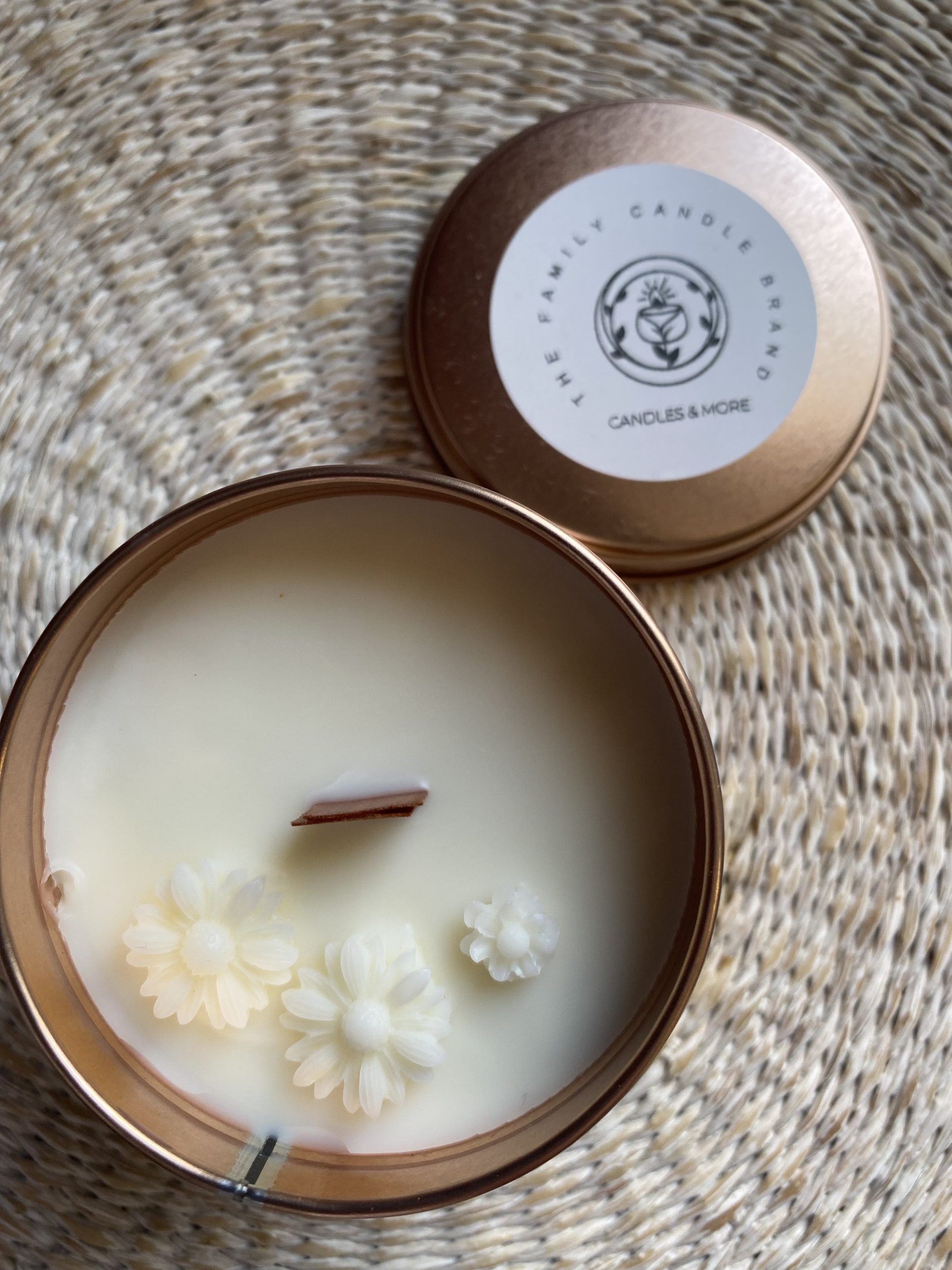 Vela de soja 100% natural con aroma floral ideal para una tarde de calma y relajación.
